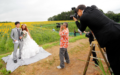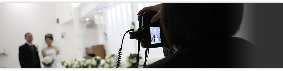 結婚式当日のビデオとスナップの撮影サービスをご提供しています。高画質のハイビジョンカメラで、式の雰囲気を大切におふたりに一番近い位置で撮影します。「お姫様抱っこのシーンを撮ってほしい」「ブーケやリングピローなどの小物を撮ってほしい」など、おふたりのご希望に合わせた世界にひとつだけの作品を制作します。プロカメラマンによるスナップ撮影、披露宴の演出におふたりを紹介するプロフィールビデオなどブライダル映像のトータルをお手伝いしております。